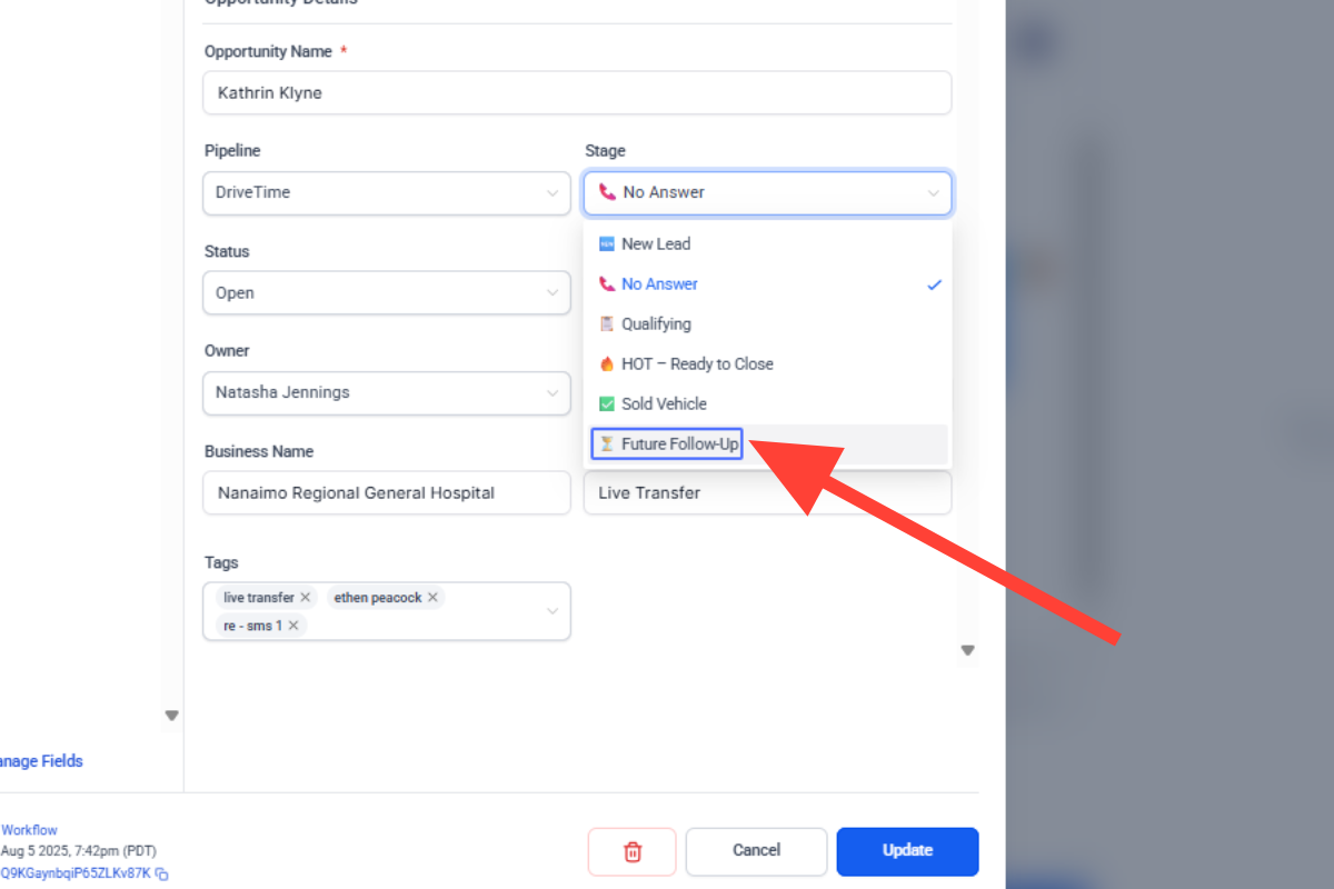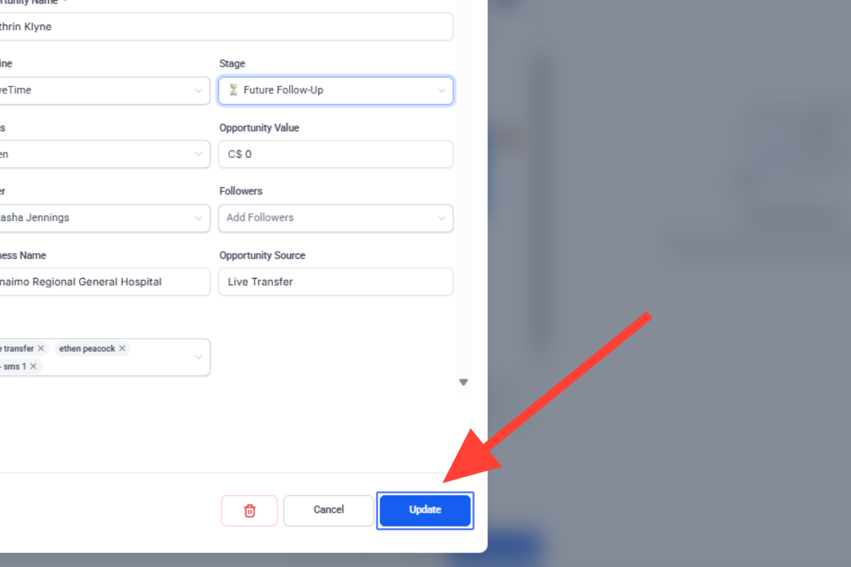 This guide provides a step-by-step process for updating the stage of an opportunity on the Contact Page.