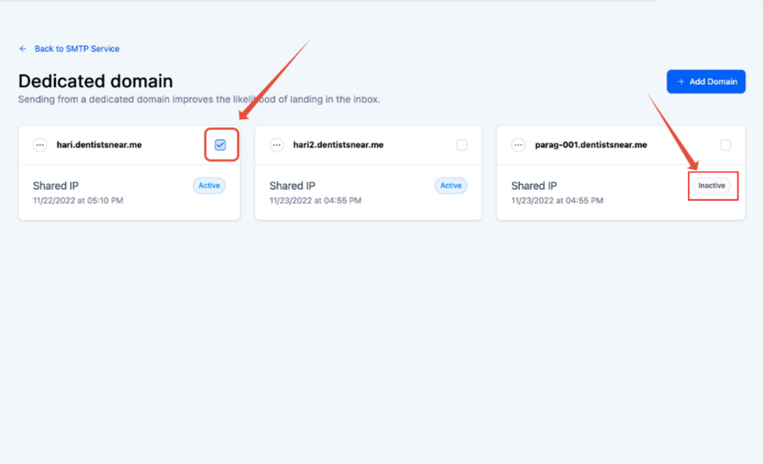 Note: Currently domains can be assigned to One-One Conversation and Workflow emails.