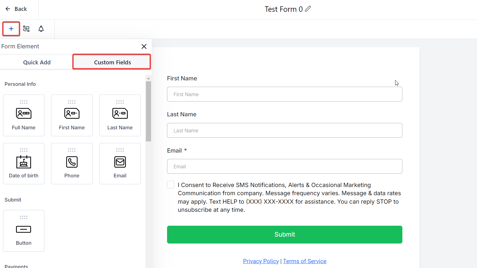 - Drag and Drop From the Custom Fields Section of Form or Survey Builder to Utilize the Custom Fields. You can also use them in any other feature in the system such as workflows. Custom fields are centralized and they can be used throughout the entire system.